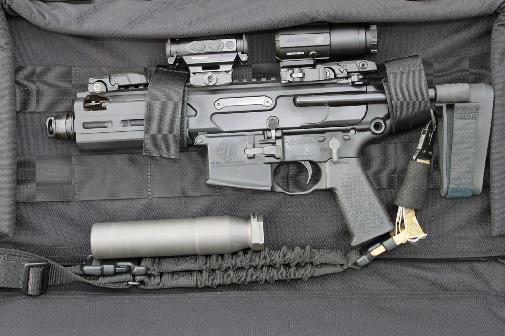 Arma disponible con supresor, magnificador y visor de punto rojo con un tamaño compacto (Sig Sauer vía Plus Ultra)