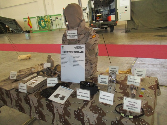 Entre los materiales mostrados y explicados por militares desplazados a tal efecto al Salón, citaremos una muestra del nuevo equipo básico del Ejército de Tierra; o el equipamiento básico de combate, donde se incluyen elementos de nueva concepción como serían las protecciones oculares con protección de impactos entre otros. Igualmente se incluía la última versión de la mochila Altus de combate, con pixelado árido; el nuevo chaleco de combate, aun experimental, que incluye suelta rápida y todo el también en el citado pixelado. Este equipo, aún experimental, puede añadir diferentes placas anti trauma a fin de incrementar el nivel de protección.