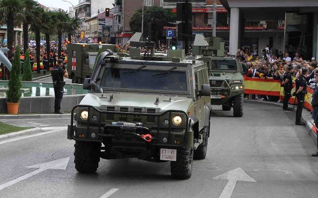·El LMV “Lince” en primer plano, detrás de se ve un Uro VAMTAC ST5, que hizo desfilar el PCMVR nº1. Foto: Julio Maíz/defensa.com.
