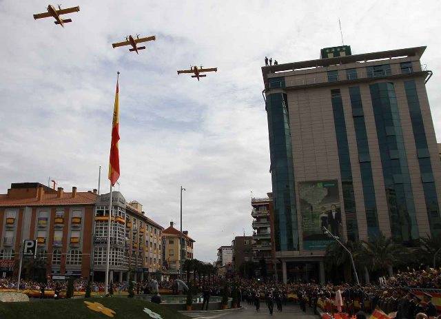 ·Pasada de los tres “apagafuegos” durante el desfile aéreo. Foto: Julio Maíz/defensa.com.