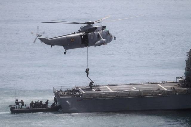 ·Momento del asalto combinado desde un helicóptero Sea King y una lancha Rhib. Foto: Julio Maíz/defensa.com.