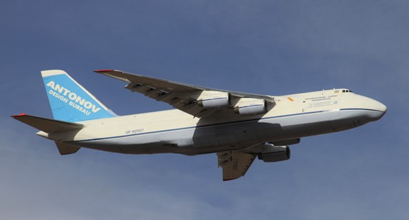 ·El An-124 matriculado UR-80007 despegando de la Base de Torrejón de Ardoz. Foto: Julio Maíz
