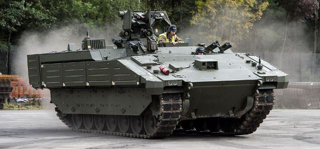 Uno de los primeros Ares recibido. Visible la torre Protector y los receptores de alerta láser de Elbit Systems (British Army)