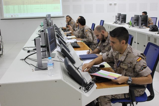 Toda la información de la batalla aérea, procedente del CPDA, de la fragata y de la UDAA, se centraliza en el Centro de Operaciones Aéreas (AOC), desde donde se llevan las operaciones en curso y donde el comandante del MDOA toma las decisiones y da las órdenes oportunas en tiempo real, según la evolución del escenario. Previamente al desarrollo del ejercicio, el AOC fue el responsable de planear el escenario y de preparar los diferentes eventos (“injects”) que se encontrarían las fuerzas participantes en la fase de ejecución.