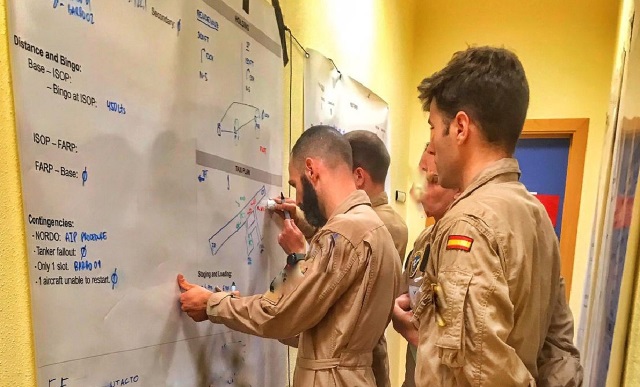 ·La planificación de los múltiples ejercicios de operaciones especiales que ordenaba el MCOE requerían largas jornadas de planeamiento. (foto: Ejército del Aire)