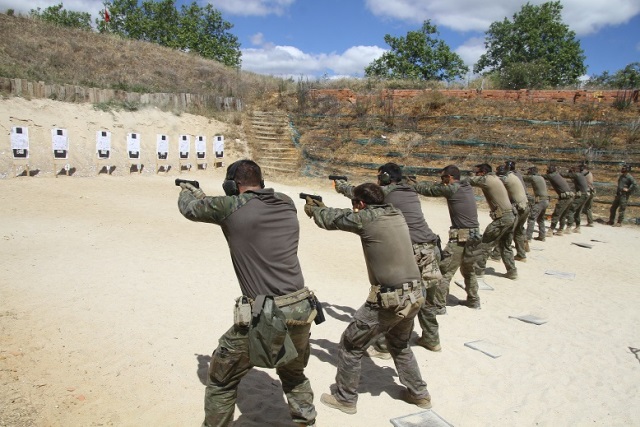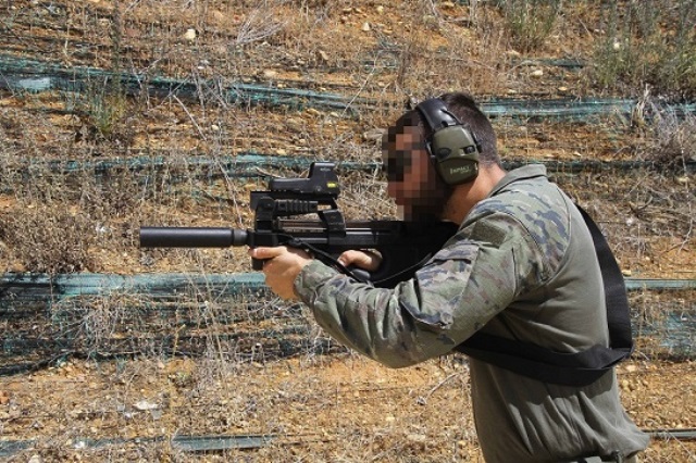 ·Un miembro del MOE (Mando de Operaciones Especiales) del ET hace prácticas de tiro con un subfusil FN P90, dotado de una mira holográfica EOTech. (foto: Julio Maíz/defensa.com)