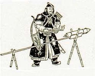 Ese polvo que tanto aterraba, era la pólvora, es decir, la pólvora negra, la única que existió hasta finales del siglo XIX, y que siempre ha sido una mezcla de salitre (nitrato potásico), carbón y azufre, en proporciones diversas. Fue en el 1044, reinando la dinastía china de los Song, cuando apareció el compendio militar Wu jing zong yao (El libro del dragón de fuego) en el que se describía la composición [2] de la pólvora y su utilización tanto para la guerra como para la diversión. Se dispone de grabados de lanzamiento de cohetes, de troncos con pólvora, y de pájaros de fuego, esto es, pájaros a los que se ataban saquitos de pólvora de modo que al volver a sus nidos, incendiaban las ciudades sitiadas. No hay imágenes de cañones, aunque si de hipotéticos viajes a la Luna.