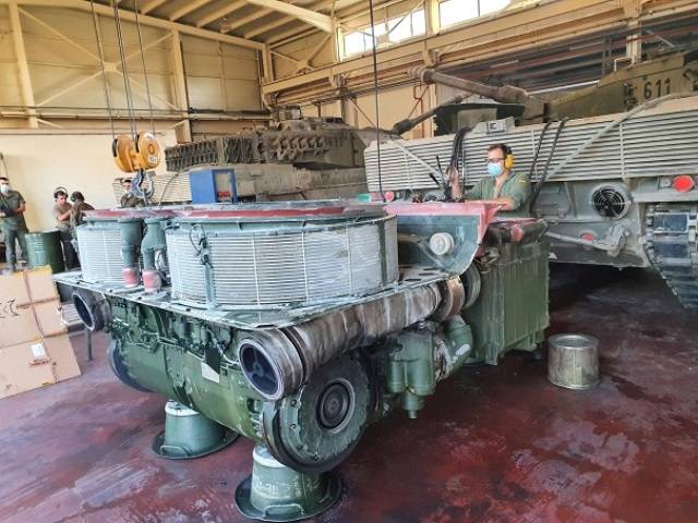 Fotografía: El gigantesco motor MTU MB 873 Ka-501 del carro de combate Leopardo 2E. (foto Ejército de Tierra)