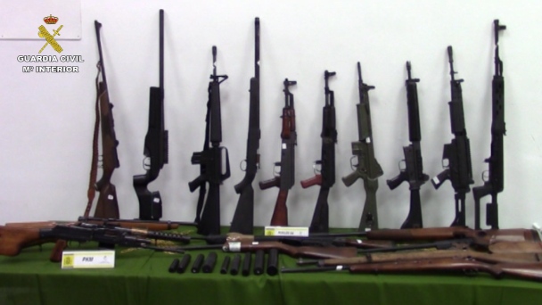 (defensa.com) La Guardia Civil intervino ayer uno de los mayores arsenales de armas y municiones que se recuerdan en España tras detener a un vecino de A Coruña. Se descubrieron en dos registros practicados en A Coruña y uno en Lugo 110 armas de fuego, incluyendo 30 fusiles de asalto, 18 subfusiles, 47 pistolas, 12 rifles y carabinas, 3 revólveres, 10 silenciadores, 5 kilos de pólvora y más de 130.000 cartuchos metálicos además de herramientas para rehabilitar armas.