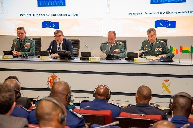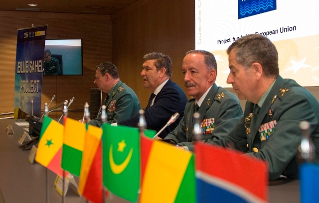 El Director General de la Guardía Civil, José Manuel Holgado ha destacado la labor del proyecto BLUE SAHEL que, gracias a la Comisión Europea, reúne a cuerpos policiales de España, Mauritania, Malí, Senegal, Guinea Conakry, Guinea Bissau, Gambia y Cabo Verde. Ha hecho referencia asimismo a las actividades que se realizarán de forma progresiva durante los años 2017 a 2019, entre ellas la creación de patrullas transfronterizas en los países asociados, la realización de acciones formativas de calidad para la vigilancia de fronteras fluviales y marítimas, la creación de Unidades de inteligencia, la profundización en el análisis de riesgos y el reforzamiento de la cooperación mutua entre los países y los cuerpos policiales implicados.