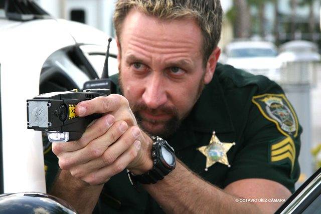 Las pistolas eléctricas Taser tienen efectos incapacitantes muy útiles para desescalar situaciones de tensión. (Octavio Díez Cámara)
