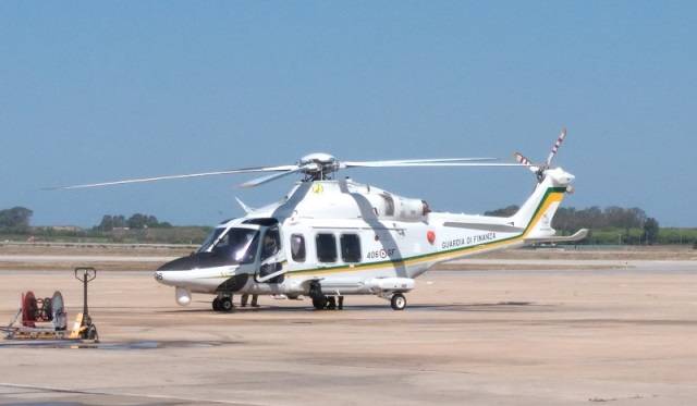 El aparato visto en Rota tenía el numeral 406 GF, tratándose por tanto del segundo y último de estos aparatos recibidos por la Guardia di Finanza italiana. Fue recibido en enero de 2010 mientras que el primer aparato, con matrícula 405 GF llegó a mediados de 2009. Se trata de helicópteros medios bimotores que están reemplazando en el Servizio Aereo de la Guardia di Finanza a los veteranos AB412HP y que operan en las instalaciones del Nucleo Helicotteri de Roma y Pescara de la Guardia di Finanza. Tienen un peso máximo al despegue de 6.400 kg., están equipados con dos motores Pratt & Whitney Canada PT6TC que les otorgan una velocidad máxima de 263 km/h, contando con un autonomía de 834 km. o 4 horas a velocidad óptima.