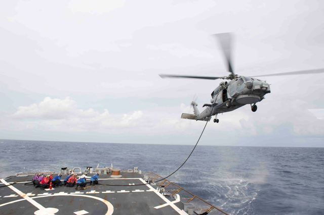 Fotografía: Un SH-60B repostando desde el USS Donald Cook. (Julio Maíz)