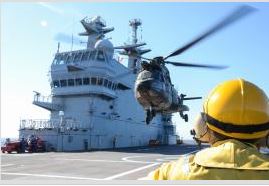 Ambas aeronaves realizaron también prácticas de repostaje en caliente en la cubierta del buque, tanto para la instrucción de las tripulaciones de los helicópteros como para la del personal de cubierta.