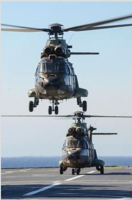 Las tripulaciones de dos helicópteros de las Fuerzas Aeromóviles del Ejército de Tierra (FAMET) han realizado prácticas de tomas y despegues en el buque francés “Dixmude”, situado el 4 de agosto frente a la bahía de Cádiz. Las dos aeronaves españolas eran un “Cougar” del Batallón de Helicópteros de Maniobra (BHELMA) III, con sede en Agoncillo (La Rioja), y un “Superpuma” del BHELMA IV, con sede en Dos Hermanas (Sevilla).
