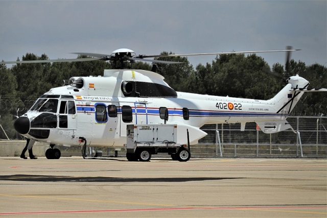 ·Imagen del AS332m1 del Ejército del Aire en la plataforma de la planta AHE. Foto: Julio Maíz/defensa.com