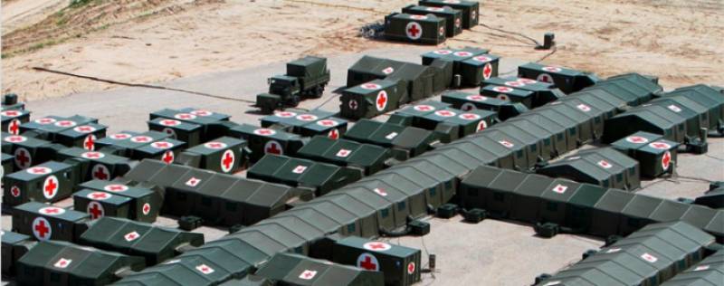 Foto: Imagen del hospital de campaña de la AGRUHOC totalmente desplegado. (foto: Ejército de Tierra).