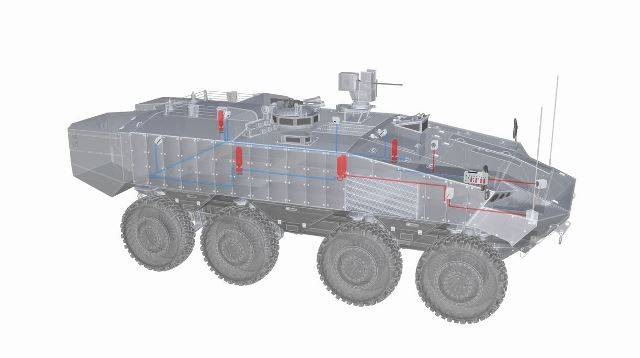 Un caso que puede ejemplificar esta situación es el sistema de extinción de incendios con que debe contar el 8x8. Los vehículos militares cuentan con sistemas a bordo para detectar en cuestión de milisegundos la presencia de fuego en zonas clave como el compartimento de motor o el de la tropa y cilindros extintores automatizados que apaguen el fuego rápidamente para evitar daños en el grupo motriz y a la tripulación. También se pueden incluir cilindros extintores sobre las ruedas o las escotillas, de tal manera que el vehículo puede seguir moviéndose en cualquier situación y que el personal puede abandonar el vehículo en caso de necesidad.
