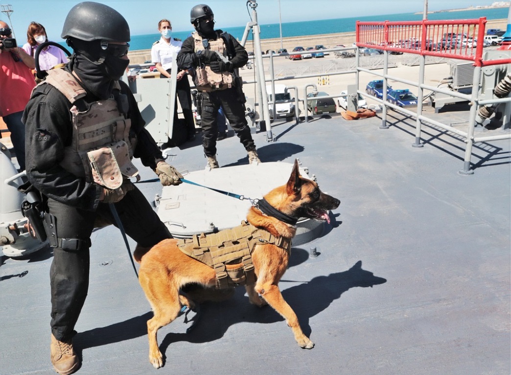 La FUPRO embarco un perro en la fragata “Reina Sofía”. (foto Ministerio de Defensa)