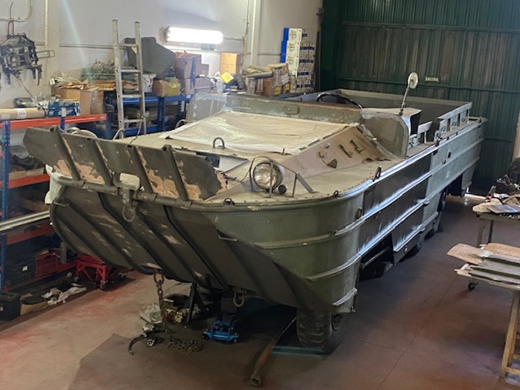 El DUKW adquirido en Francia, durante su concienzudo y minucioso proceso de restauración en España. (foto Asociación Equus Belli)