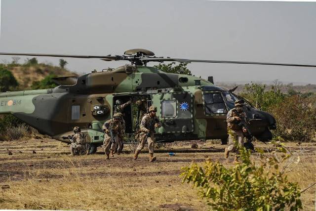 Los infantes de Marina participantes en el asalto aéreo forman parte de la Fuerza de Infantería de Marina (FIMAR) EUTM-MALI XIX, que se desplegó en noviembre de este año para relevar al FIMAR del EUTM-MALI XVIII. En el centro de entrenamiento de Koulikoro o Koulikoro Training Center (KTC) llevan a cabo misiones diarias de seguridad y protección del KTC, de instrucción y escolta de convoyes, además de constituir una Fuerza de Reacción Rápida o Quick Response Force (QRF) que, gracias a los helicópteros NH90, aumenta considerablemente su capacidad de despliegue. (Julio Maíz Sanz)