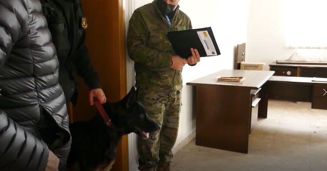 En el recinto que recreaba el lugar donde se había localizado una célula yihadista, se procedía a la búsqueda de explosivos empleando los perros adiestrados. Estos diligentemente se aproximaban junto a su adiestrador hasta que este le daba la orden para comenzar el rastreo. Unos de forma más sistemática y otros más directa, prácticamente todos los perros que participaron encontraron el explosivo, momento en el cual se sentaban ante él señalándolo esperando la orden de su adiestrador para que volviera con él y recibiera su premio y felicitación. En una situación real a continuación el técnico desactivador de explosivos (TEDAX) sería el encargado de neutralizar y retirar la bomba o el explosivo encontrado.