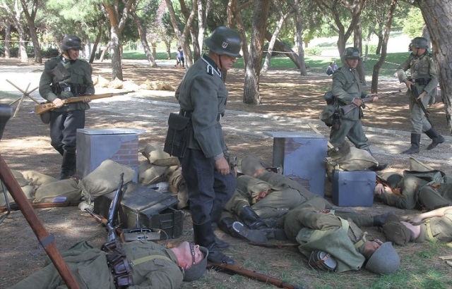 3-Tras finalizar la batalla, lo alemanes, en este caso de la SS por exigencias del guion cuando en realidad fueron de la Wehrmacht, tomaron las posiciones plagadas de muertos polacos. Foto: Julio Maíz/defensa.com.