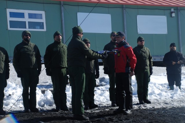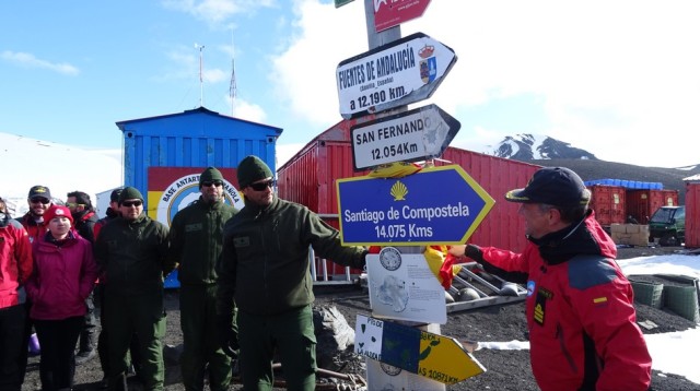 El pasado domingo se celebró en la Base Antártica Española “Gabriel de Castilla”, situada en la isla Decepción, la ceremonia de izado del banderín de la “I Peregrinación desde la Antártida a Santiago de Compostela” y el descubrimiento de la Señal Jacobea, en el totém de la base, que indica la distancia entre ambos puntos y marca el punto de inicio de esta nueva Ruta Jacobea, la más larga de las existentes en la actualidad.