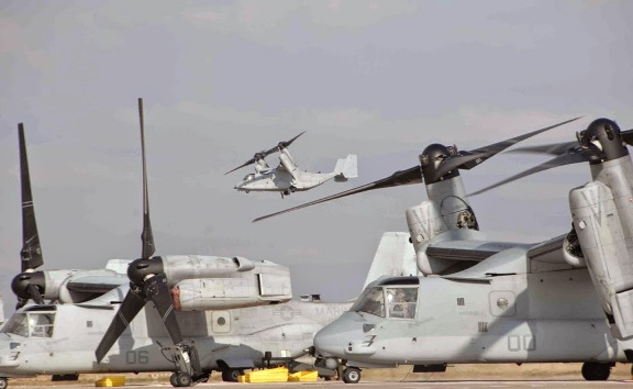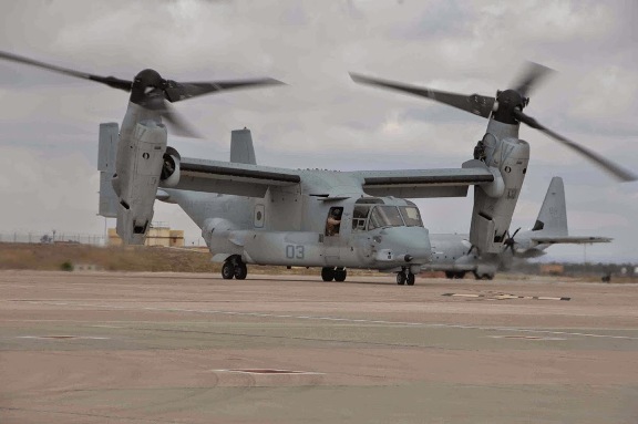 Estos convertiplanos están siendo desplegados en numerosos ejercicios junto a medios de las Fuerzas Armadas españolas, como hemos ido informando en defensa.com. En junio una de estas aeronaves tomó en la cubierta del Buque de Proyección Estratégica Juan Carlos I de la Armada Española y en mayo los marines lo emplearon durante un ejercicio junto al Regimiento de Infantería Ligera “Príncipe” nº 3 de la Brigada de Infantería Ligera Aerotransportable “Galicia VII” (BRILAT)en Asturias.