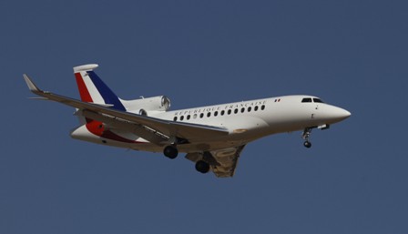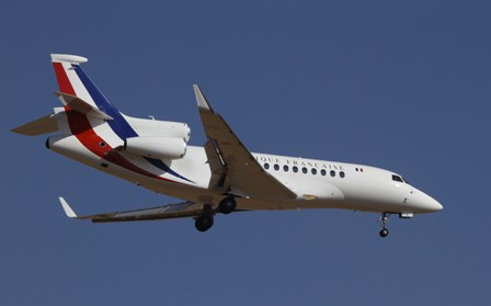 1- El elegante Dassault Falcon 7X donde venía el primer ministro galo Manuel Valls a Madrid, donde se entrevistó con el presidente Rajoy y el nuevo jefe de la oposición Pedro Sánchez.