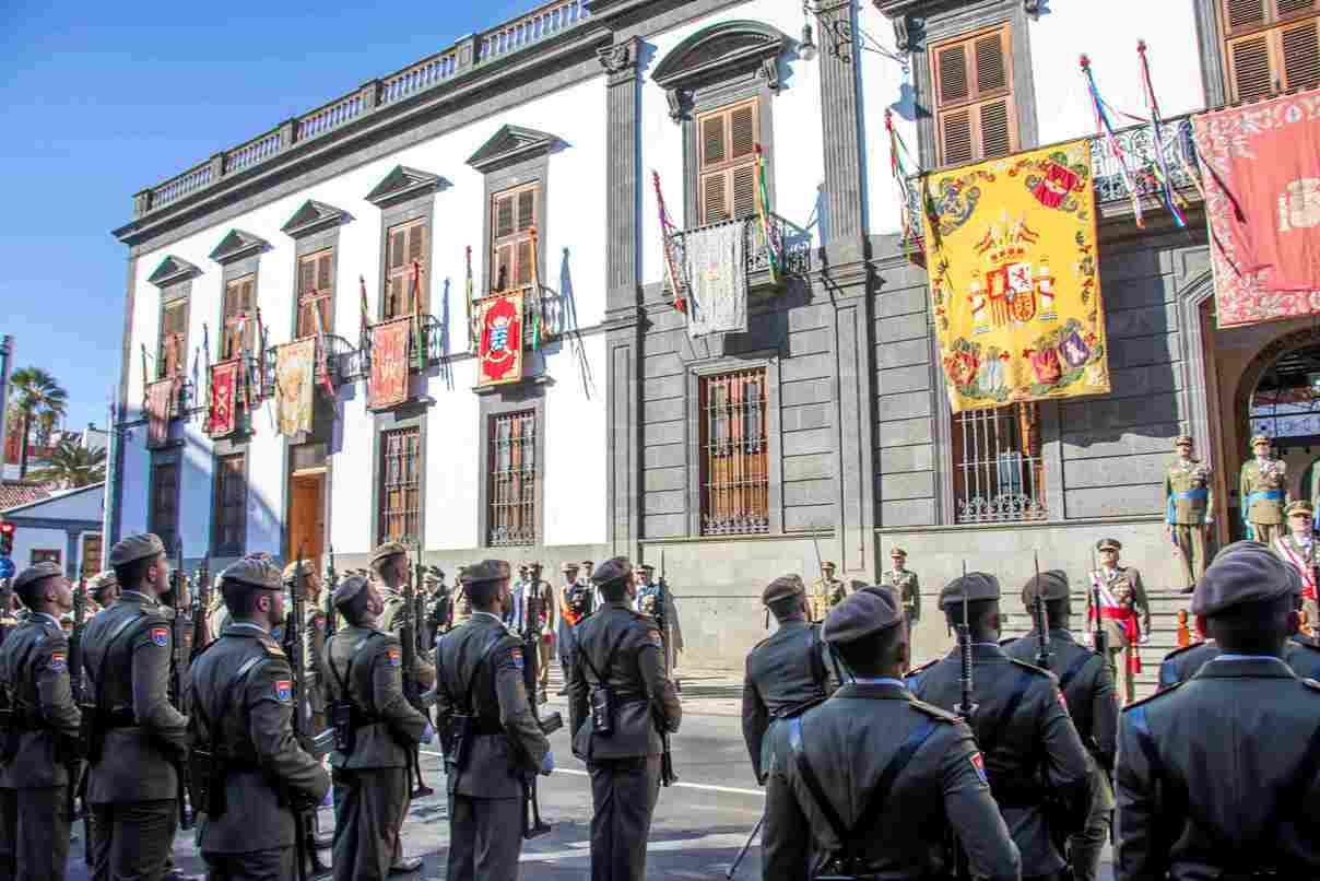 A las 11:00 horas, la Plaza de Weyler fue escenario de una Parada Militar que congregó a autoridades civiles y militares, así como a la ciudadanía tinerfeña. La formación estuvo compuesta por el Regimiento de Infantería “Tenerife” 49, la Banda de Guerra nº 2 de la Brigada “Canarias” XVI y la Unidad de Música del Mando de Canarias.