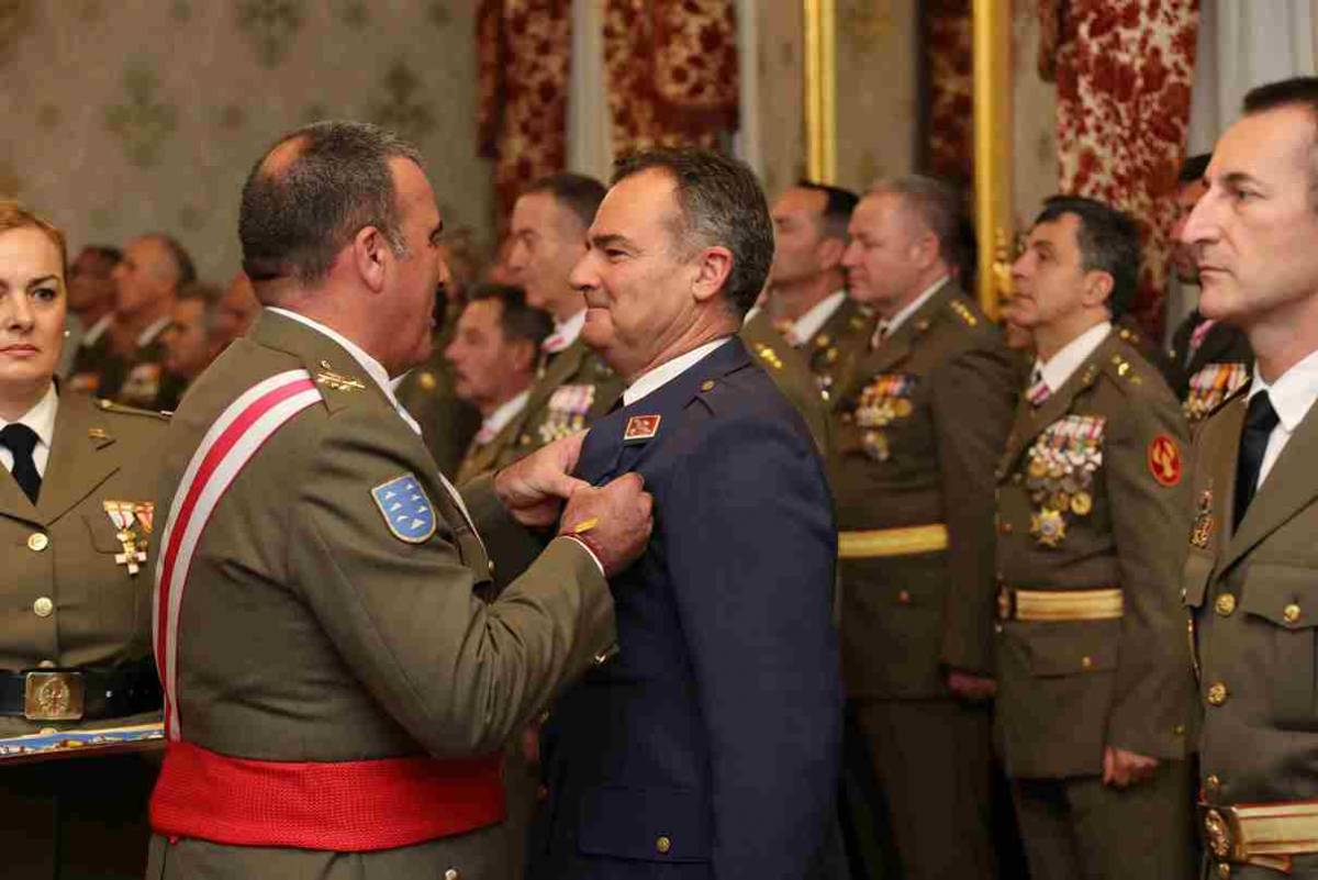 El General Salom comenzó el cierre de su discurso con la felicitación a los condecorados poniendo en “valor el reconocimiento de unos méritos atesorados mediante la entrega y el sacrificio, vuestro, y -en muchos casos- de vuestras familias. Vuestro ejemplo nos debe estimular a todos para imitaros y a vosotros, para no defraudarnos.”