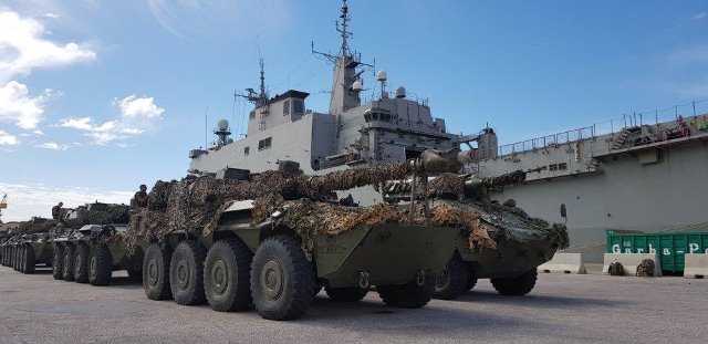 Desde su Base Militar “General Almirante”, la unidad de caballería desplazó a la mayor instalación portuaria de la Región de Valencia sus vehículos blindados: 8x8 Centauro, 6x6 BMR (Blindado Medio de Ruedas) M1 portamorteros, los muy similares VEC (Vehículos de Exploración y Caballería), 4x4 VAMTAC (Vehículos de Alta Movilidad Táctica), etc. Una vez allí se puso en práctica el planificado embarque del material en la gran bodega de este navío LPD (Landing Platform Dock). Posteriormente se procedió al desembarco de los vehículos utilizando la capacidad que tiene el “Galicia” de ser usado como navío de transporte de material rodante, o como se designa internacionalmente RO-RO (Roll On-Roll Off).