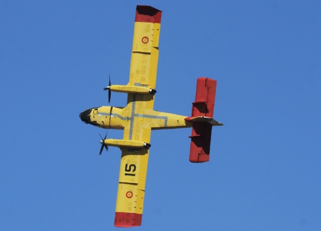 ·El veterano Canadair (actualmente Vicking Air) CL-215T realizó varias pasadas en las que además de arrojar agua, sus pilotos demostraron la maniobrabilidad de este biturbina.