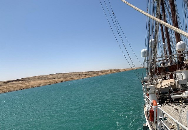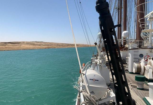 La última vez que el buque cruzó el Canal de Suez fue en el año 2002 mientras realizaba su X Vuelta al Mundo. Tras el cruce del Canal el buque tiene previsto recalar en La Valetta (Malta) durante los días 3-5 de junio en la que será su última escala extranjera.