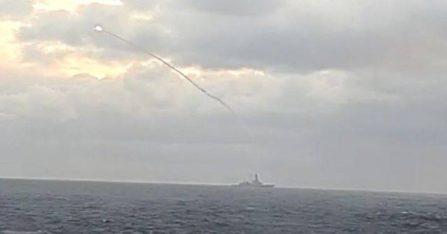 Instante en el que el misil abandona la fragata (Armada española)