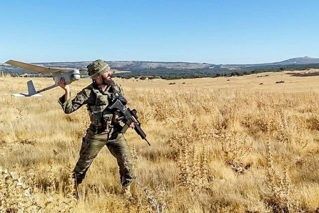 Fotografía: Un legionario lanza un RPAS tipo RQ-11 “Raven”. (foto: Ejército de Tierra).