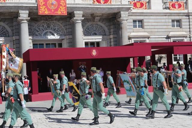 En el acto militar central conmemorativo del Día de la Fiesta Nacional de España, que se ha desarrollado en un formato reducido como consecuencia de la pandemia, ha tenido un especial protagonismo Legión, que este año conmemora el centenario de su creación. En total participaron 527 militares, encuadrados en ocho secciones pertenecientes a la Guardia Real, la Academia Central de la Defensa, el Regimiento “Inmemorial del Rey” del Ejército, la Agrupación de Infantería de Marina de Madrid (AGRUMAD), la Escuadrilla de Honores del Ejército del Aire (EDHEA), la Unidad Militar de Emergencias (UME), la Agrupación de Reserva y Seguridad (ARS) de la Guardia Civil, y La Legión, así como una Unidad de Música.