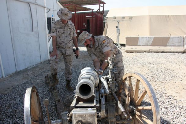 ·El coronel Salom mostrando el famoso "Cañón de Besmayah"
