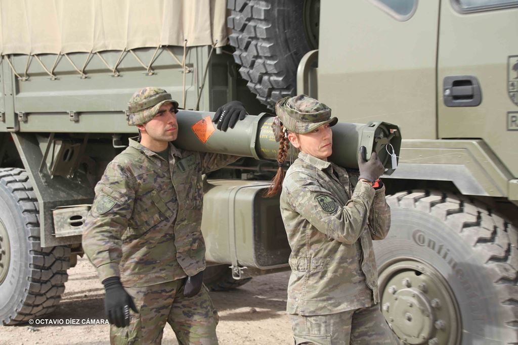 En camiones todo terreno se han transportado hasta distintos emplazamientos las municiones HE-T estibadas dentro de contenedores metálicos que las protegen de golpes accidentales y permiten tenerlas durante mucho tiempo almacenadas siempre que no se superen temperaturas que van desde los -40º bajo cero a los 50º centígrados.