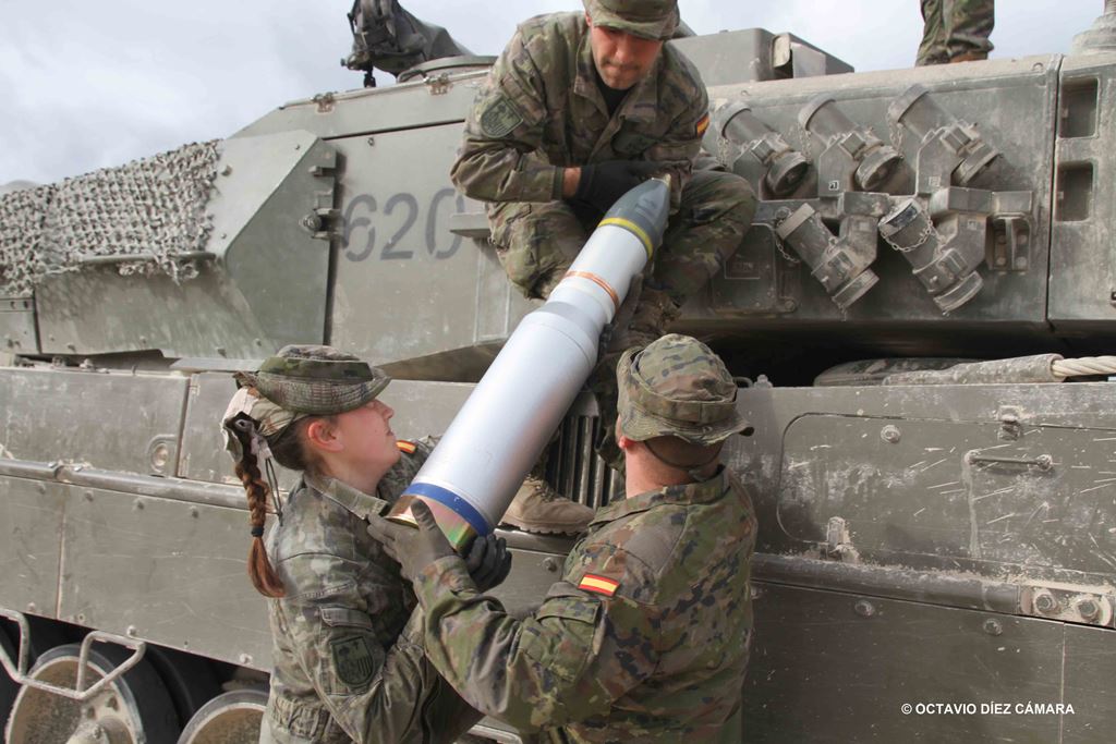 Una vez en las proximidades de los Leopardo, los cuatro tripulantes, perfectamente coordinados, procedían a desembalarlas y a mover las municiones desde el exterior hasta el interior del carro de combate, donde uno de los militares las iba estibando en la santa bárbara blindada habilitada para ello. Hicieron fuego con ellos en varias ocasiones y contra objetivos de diferente carácter, obteniendo muy buenos resultados en la ejecución del disparo y la precisión alcanzada.
