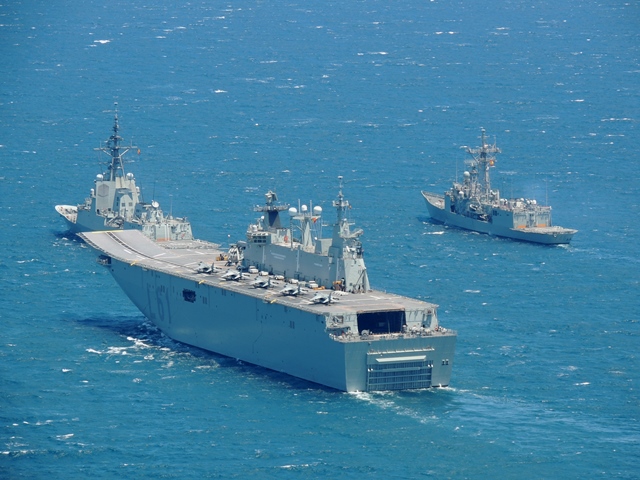 Al buque LHD le acompañará como escolta y apoyo la fragata “Blas de Lezo” (F-103), del tipo F-100, construida por Navantia. La larga navegación entrañará, tras cruzar el Mediterráneo, cruzar el Canal de Suez extremando las medidas de seguridad, a pesar de la férrea vigilancia que realizan las Fuerzas Armadas de Egipto. Una vez en el Mar Rojo, tras pasar los estrechos de Bab el Mandeb y de Ormuz, ya en el golfo pérsico los navíos de la Armada español se dirigirán a Kuwait, llegando muy posiblemente al puerto de Shuaiba, a unos 45 kilómetros de la ciudad de Kuwait. En esta ciudad portuaria cuenta Estados Unidos con una gran base logística, Camp Spearhead, a donde llega buena parte del material militar que utilizan en Irak.