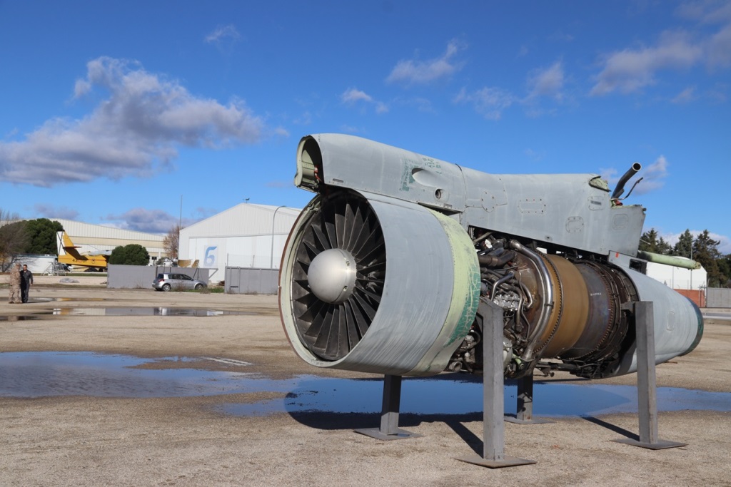 Uno de los motores del Boeing 707, espera su montaje en la zona que acogerá la próxima ampliación del Museo. (foto Julio Maíz)