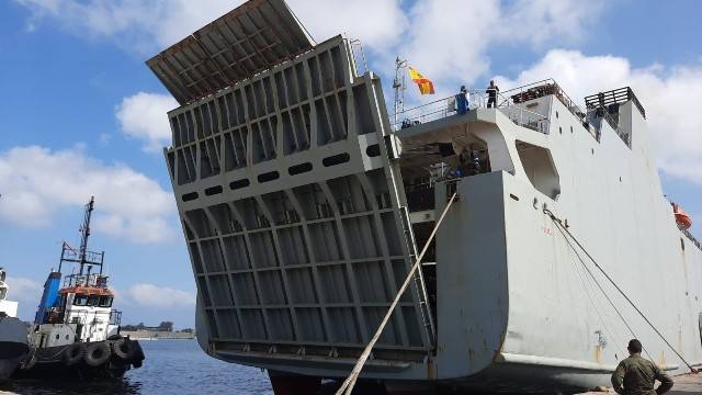 El buque salió de Valencia el pasado 21 de mayo, con una carga importante de material, como varios tipos de vehículos y material de protección de la fuerza así como piezas y conjuntos de repuesto.