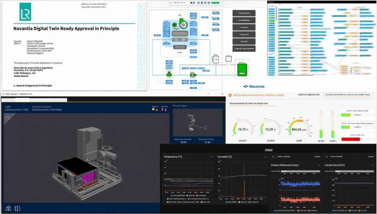 Navantia ha recibido de Lloyd’s Register (LR) la Aprobación en Principio (AiP) por su gemelo digital del sistema de enfriamiento de aire, un desarrollo que incorpora modelos avanzados de inteligencia artificial. Se trata de un hito relevante en el ámbito de la digitalización naval, que reconoce la madurez de las prácticas de ingeniería, datos y aprendizaje automático aplicadas por la compañía pública.