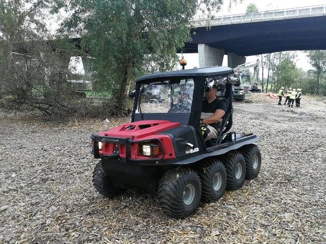 La UME adquirió a finales de 2016 seis de estos vehículos, diseñados y fabricados por la firma canadiense Argo, que cuentan con capacidad anfibia y que pueden circular por zonas pantanosas, nieve o incluso adaptado sobre vías de tren, como se explicó en defensa.com. Hasta la fecha se han podido ver varias imágenes de estos vehículos en exposiciones de material, e incluso se mostró uno en el pasado desfile del 12 de octubre. Aunque no ha sido hasta esta misión en Extremadura cuando se han visto imágenes del medio en acción, que dadas sus características resulta muy útil en las operaciones que se están desarrollando en las orillas del Guadiana.