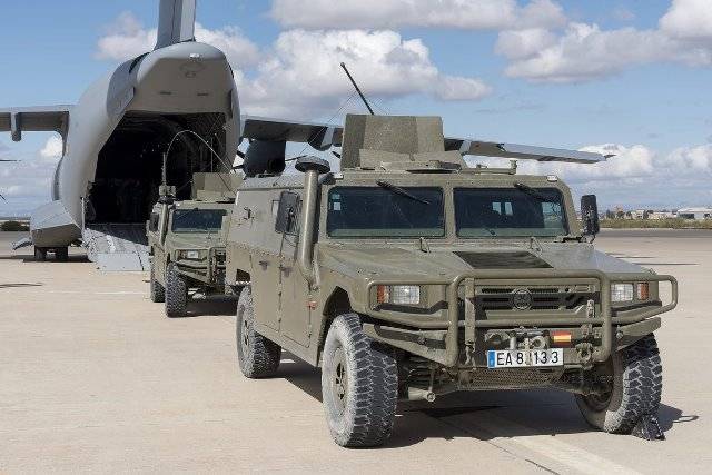 Fotos de Miguel Ángel Blázquez Yubero (YUBE PHOTO 2019.): Dos de los VAMTAC S3 de la EADA, frente a la rampa de carga del A400M.