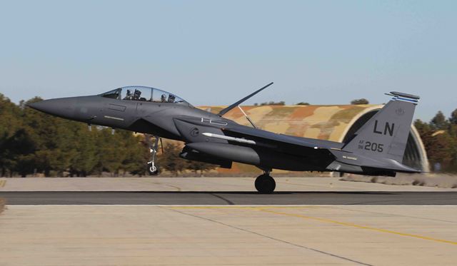 Fotografía: Un F-15E aterrizando en Albacete (defensa.com)