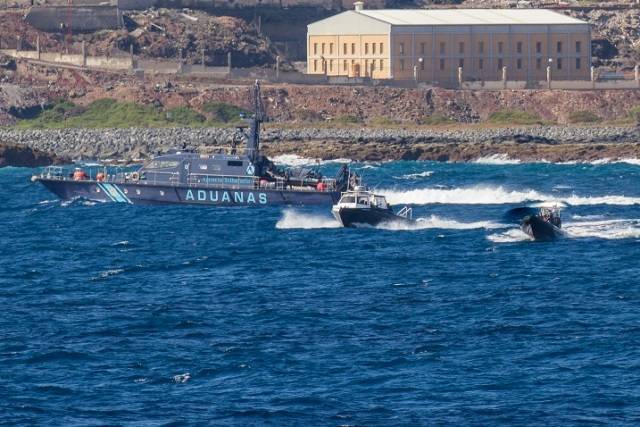 Fotografía: Imagen de varios de los medios de la Armada y el Servicio de Vigilancia Aduanera participantes.
