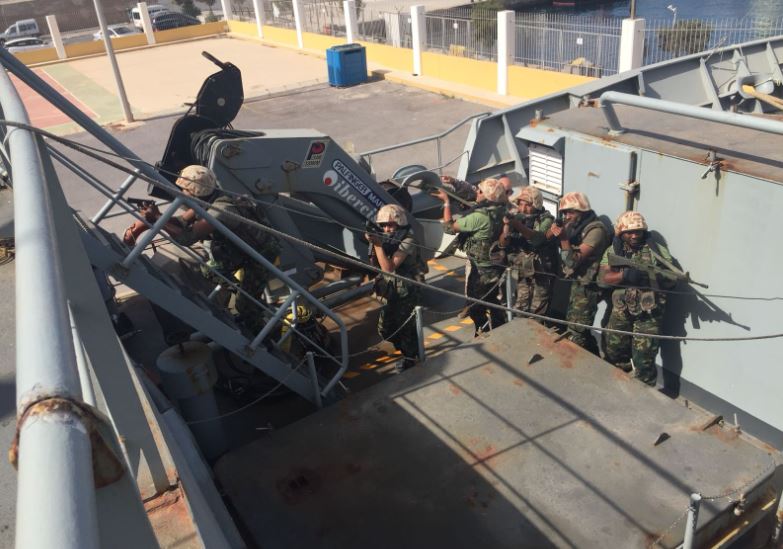 En el curso VBSS se les adiestró en la realización de distintos tipos de abordaje según la situación y amenaza, incluyendo: planeamiento y preparación de operaciones de abordaje, técnicas especiales de inserción, primeros auxilios a bordo, registro de contenedores marítimos, etc. Para ello se realizaron prácticas en los buques de la Armada “Tarifa”, “Alborán” y “Duero”. Este último, el cazaminas “Duero”, fue la plataforma empleada para realizar de noche, el ejercicio final que demostraría la evolución conseguida por los alumnos libios en un corto plazo de tiempo.